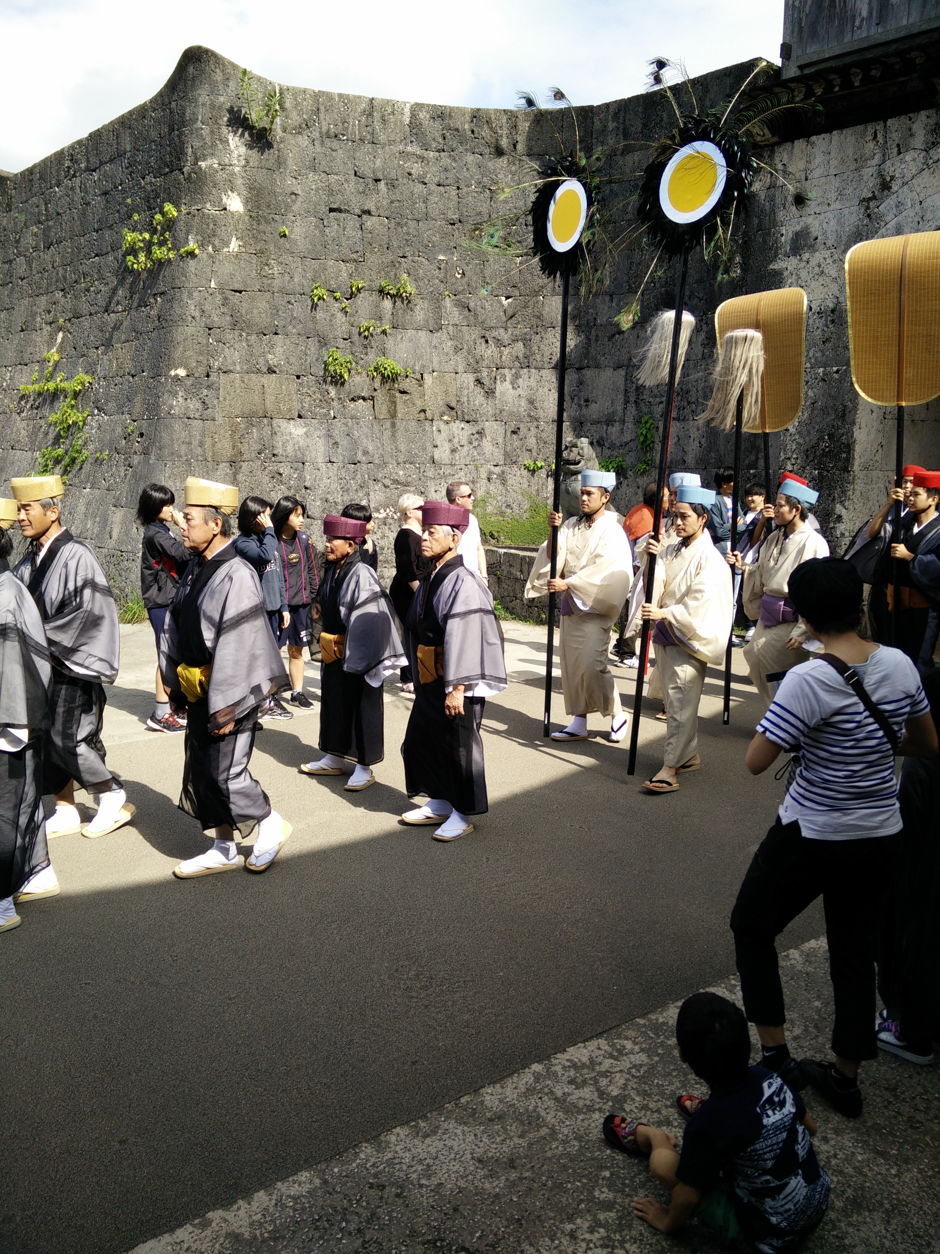 Heute ist der dritte November und Tag der Kultur als Feiertag in Japan. Die Läden hatten trotzdem offen. Nichts desto trotz haben due Feierbiester hier wieder Klammotten aus dem Schrank geholt. Sie hatten ja erst am Wochenende ihr Kulturfestival für Okinawa.